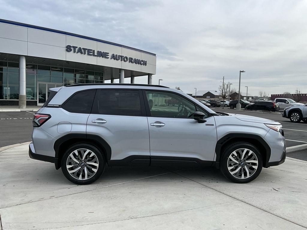 2025 Subaru Forester Touring Hybrid â" Fruitland ID Experience efficient capability with this 2025 Subaru Forester Touring Hybrid, now available in Fruitland, ID. Built around a proven 2.5L 4-cylinder Full Hybrid Electric (FHEV) powertrain and Subaru's legendary AWD system, this Forester delivers excellent fuel economy without sacrificing confident all-weather traction and composed on-road handling. Comfort and technology are front and center in the Touring Hybrid. Premium leather seats and an intuitive navigation system provide a refined cabin for every drive, while Hands Free Bluetooth and Android Auto keep your phone connected and accessible with minimal distraction. Advanced safety features like Lane Keep Assist help maintain lane position and enhance driver confidence on highways and city streets. This Forester Touring Hybrid is an ideal choice for drivers who want efficient hybrid performance paired with practical versatility â" generous cargo space, comfortable seating, and a suite of modern convenience features. Whether commuting around Fruitland or heading out for weekend adventures, this Subaru offers a balanced mix of efficiency, comfort, and capability. We're offering this 2025 Forester Touring Hybrid at the best price in the area â" competitive, transparent, and ready for immediate delivery. Contact us to schedule a test drive in Fruitland, ID, or to get more details on financing options and current incentives.