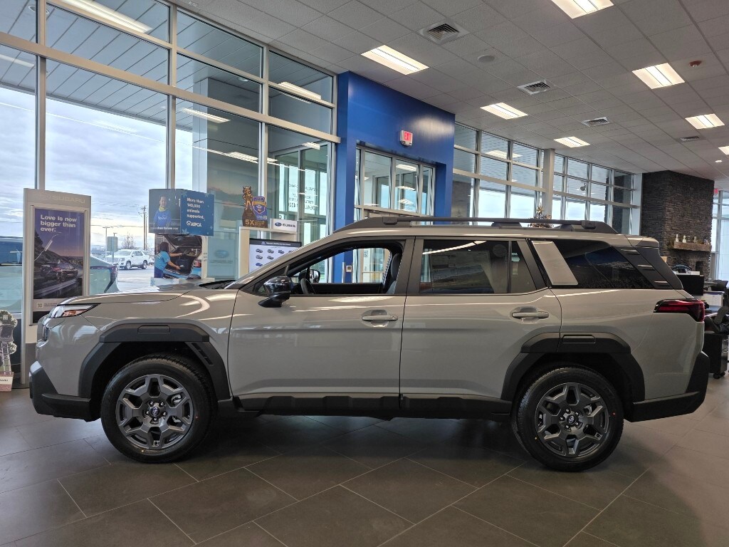 The leather seats in this mid-size suv are a must for buyers looking for comfort, durability, and style. See what's behind you with the back up camera on this model. The state of the art park assist system will guide you easily into any spot. This 2026 Subaru Outback stays safely in its lane with Lane Keep Assist. It offers Automatic Climate Control for personalized comfort. Apple CarPlay: Seamless smartphone integration for this unit - stay connected and entertained on the go! This 2026 Subaru Outback offers Android Auto for seamless smartphone integration. The Subaru Outback has automated speed control that adjusts to maintain a safe following distance, enhancing highway driving convenience. The vehicle features a hands-free Bluetooth phone system. This model has a 4 Cyl, 2.5L high output engine. Load groceries and much more with ease into the vehicle thanks to the power liftgate. It projects refinement with a racy metallic gray exterior.